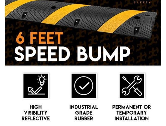 Installation is straightforward and quick. The bump comes with pre-drilled holes for secure anchoring and interlocking ends to cover wide roads seamlessly. Its bright black-and-yellow design and reflective strips make the 1 Meter Rubber Road Speed Bump highly visible during the day and night, improving driver awareness in residential streets, school zones, parking areas, and commercial roads.